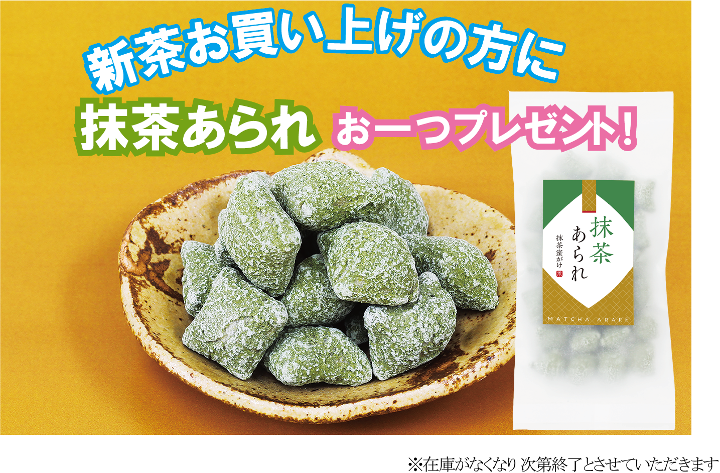 ☆お買上げのお客様には、抹茶あられをプレゼント!